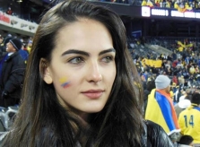Rebekah và nhóm vợ, bạn gái cầu thủ có mặt ở sân Spartak, Moskva chứng kiến trận đấu giữa Anh và Colombia.